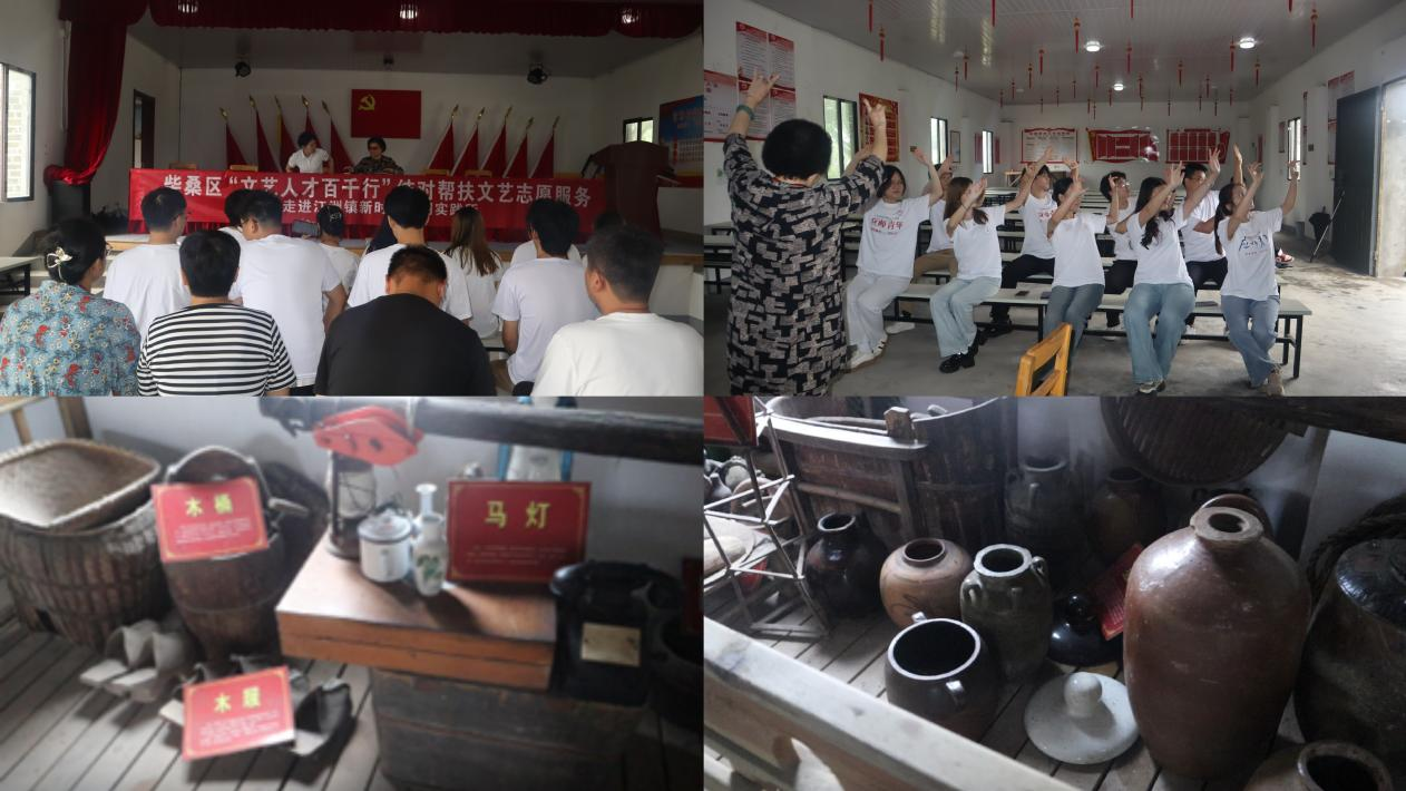 6月26日下午14时,“扶苏之翼”实践团队来到了文化宣传馆,为推动中华传统文化的传播和普及,提高学生的艺术修养和文化修养,弘扬社会主义核心价值观,在省文联夏老师的带领下学习了黄梅戏经典唱段《静夜思》。27日上午,在农耕馆中,同学们看到了许多传统的农耕工具,如锄头、犁、镰刀等,独具风韵的农具实物见证了乡村的发展和变迁。在民俗文化展室内展陈着斑驳的木犁、古老的油灯、泛黄的粮票等物件,这些物件留存着官场村人民的历史记忆,记载着他们生产生活的风俗习惯。