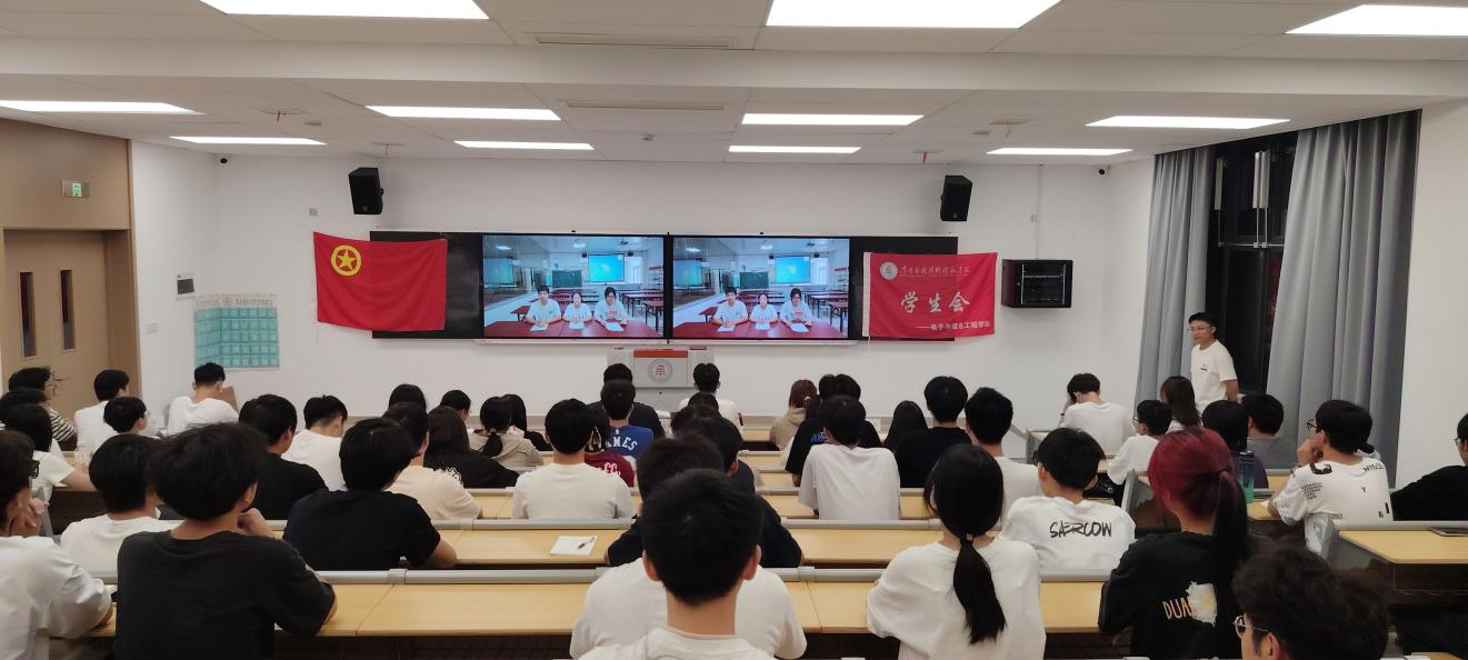 接着,学生会三位主席:洪慧珍、范存盛、廖倩倩通过视频形式欢迎新成员,对新加入学生会大家庭的成员表示欢迎,同时,对新成员提出工作建议,强调要注重时间规划,做到学业工作两不误,希望新成员开启充满活力与挑战的学生会之旅。