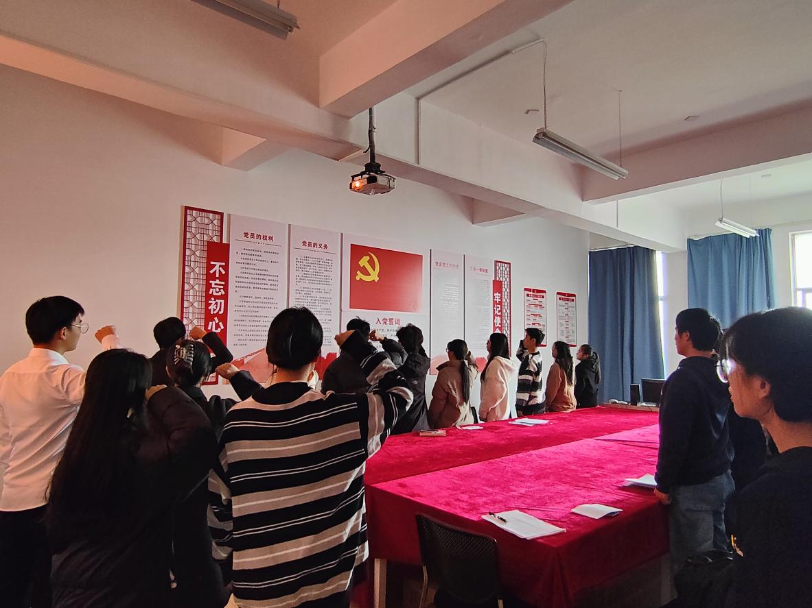为强化党员的责任意识与使命感,进一步壮大党员队伍,增强党组织的凝聚力与战斗力,威廉体育williamhill第二党支部于12月6日在1407会议室举行了新党员入党宣誓仪式,仪式由支部书记程明珠主持,支部所有在校党员及新发展党员参加此次会议。