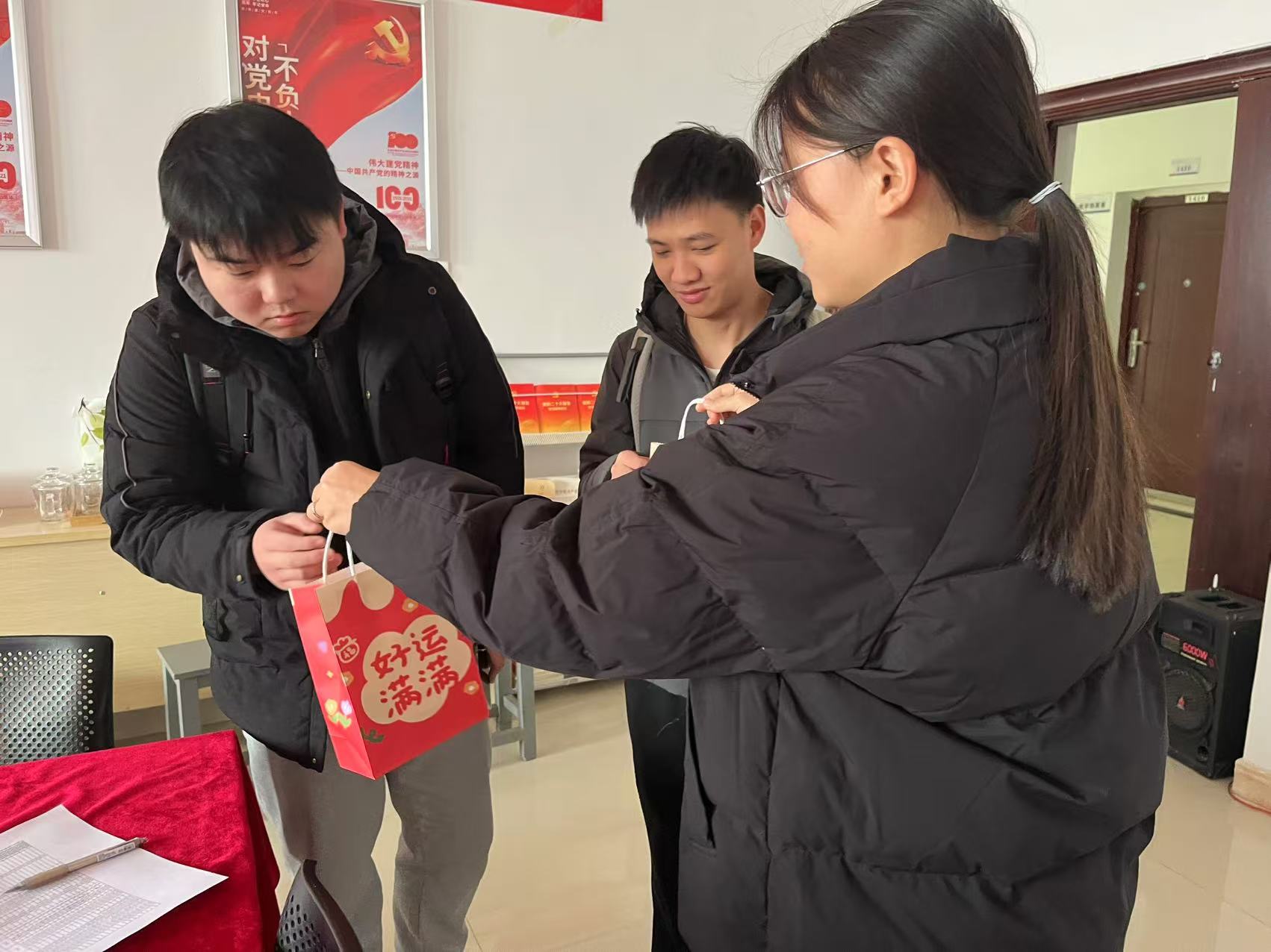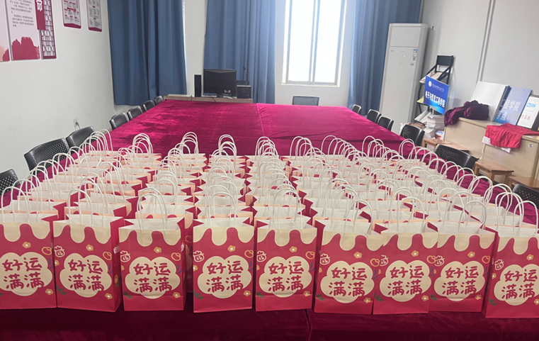 领导与老师们亲手送出的不仅仅是礼包,更是对学子们的鼓励和期许,礼物传递着温暖和关爱,祝福他们始终拥有一往无前的勇气与坚定必胜的信念!