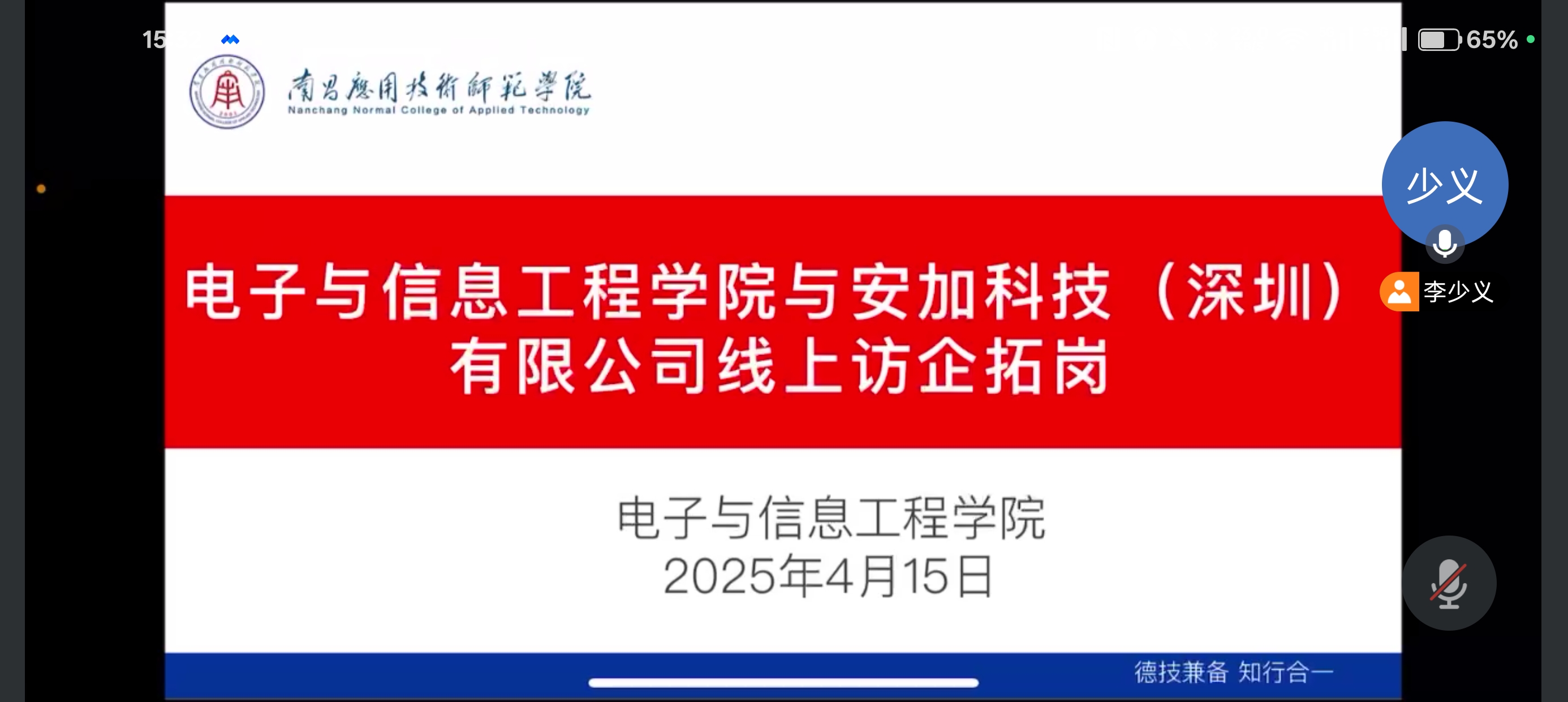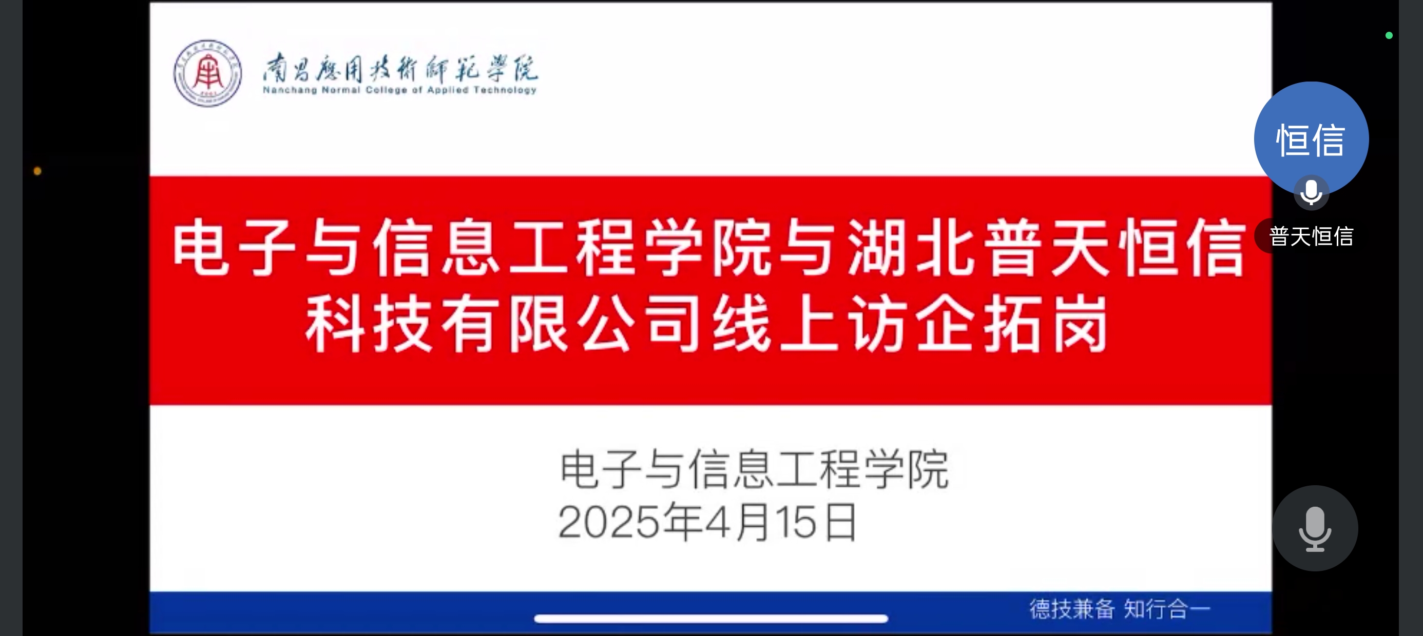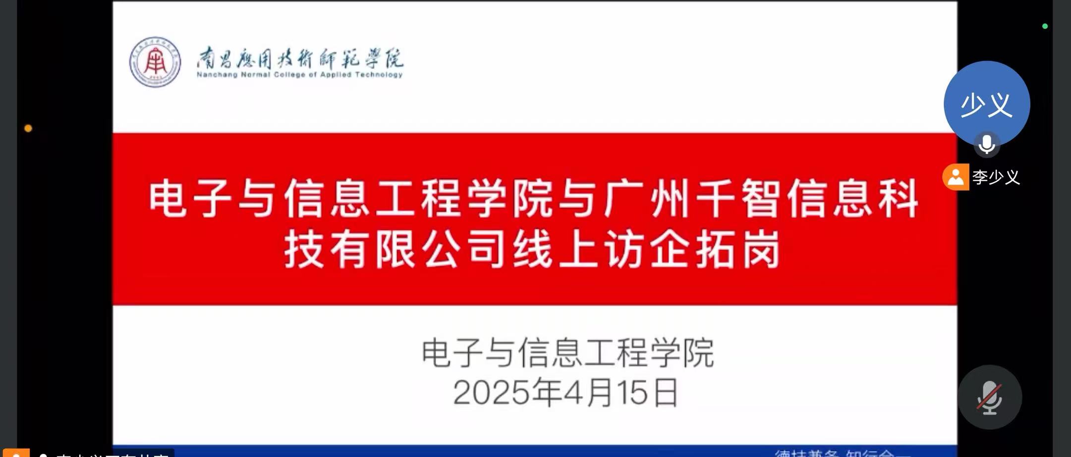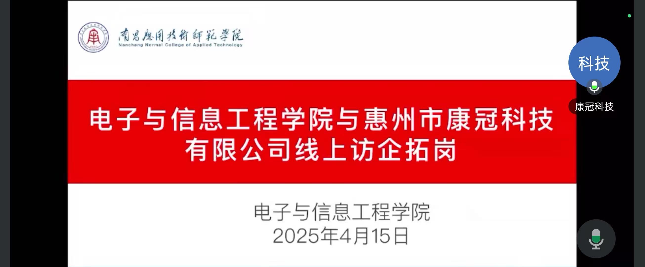 为深化校企合作,拓宽学生就业渠道,提升人才培养质量,4月15日下午,威廉体育williamhill邀请惠州市康冠科技有限公司、安加科技(深圳)有限公司、湖北普天恒信科技有限公司、广州千智信息科技有限公司等多家公司开展线上访企拓岗行动,学院党总支书记江建华及校长助理李少义出席会议,会议由就业专员曾思雨主持。
