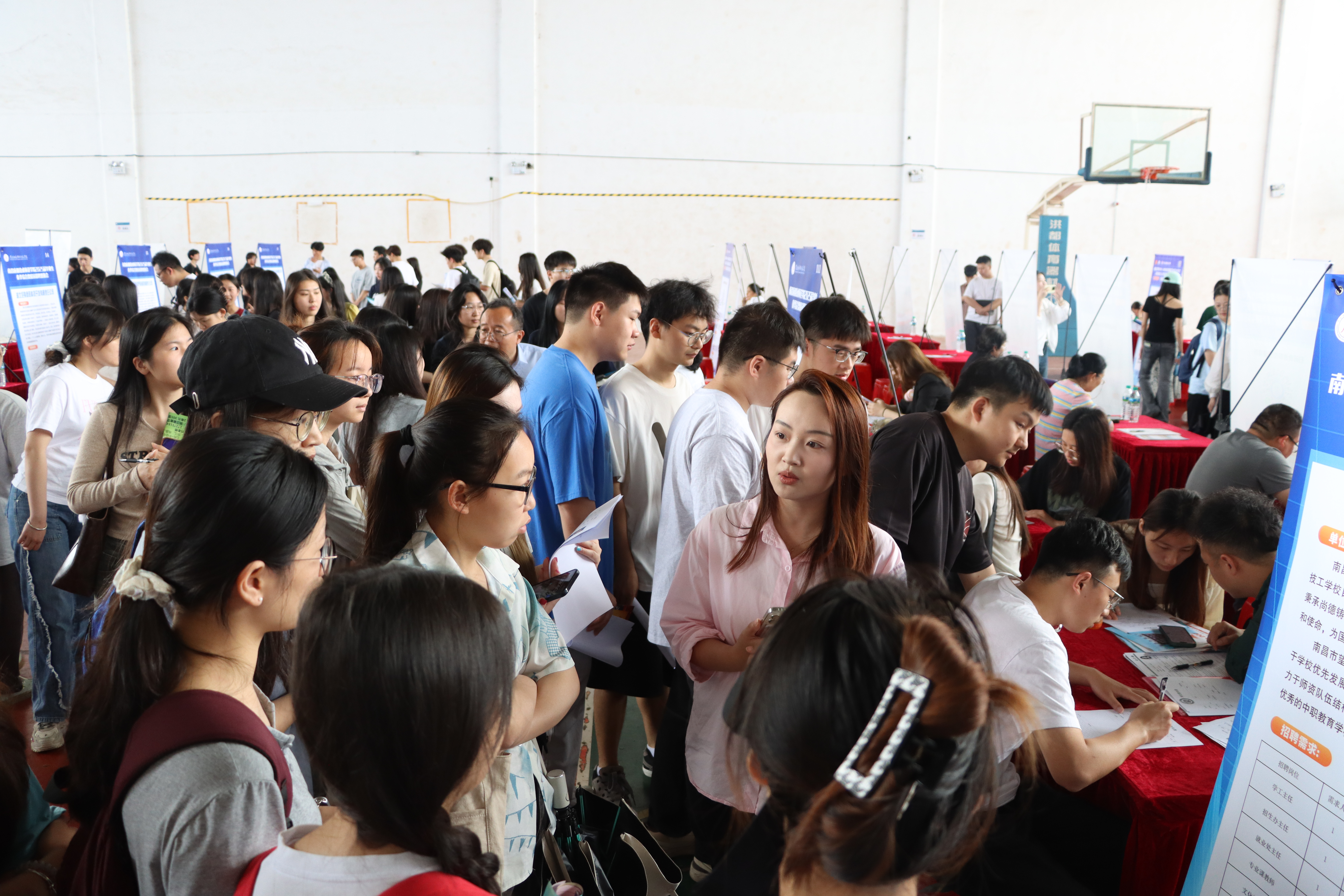 现场气氛热烈非凡,人潮涌动,企业提供的就业岗位广泛覆盖跨境电商、智能制造、金融服务、文化教育、医疗健康、信息技术等多个热门领域,充分满足不同专业背景和兴趣爱好的毕业生求职需求。参加招聘会的同学精神抖擞,身着正装,手持精心准备的简历穿梭在各个展位之间,他们积极与招聘人员交流,详细了解企业概况、岗位要求和薪资待遇,踊跃投递简历,主动把握每一个可能的就业机会。
