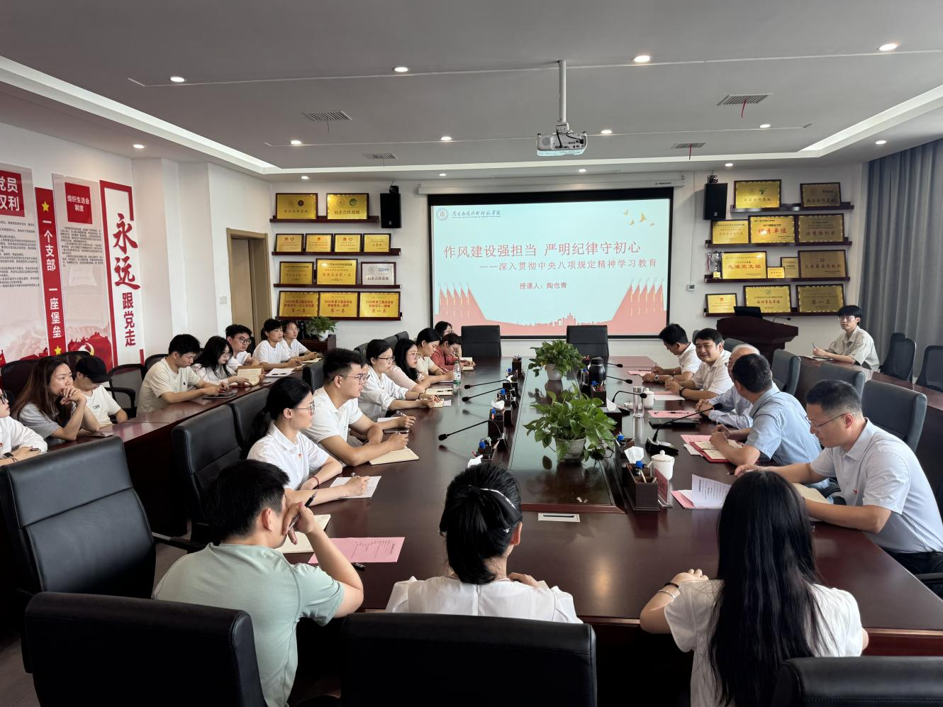 为深入贯彻中央八项规定精神,进一步推进中央八项规定精神学习教育常态化长效化。6月25日,校长陶也青以《作风建设强担当 严明纪律守初心》为题,为电子与信息工程学院教师党员讲授专题党课。