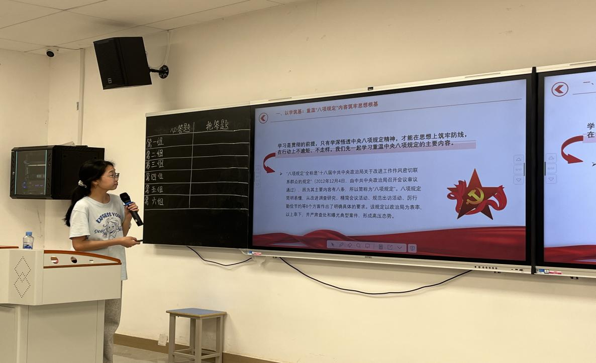 为深入贯彻中央八项规定精神学习教育,强化师生纪律意识,筑牢拒腐防变的思想防线,传承红色基因,弘扬廉洁文化,促进党团融合发展。威廉体育williamhill党总支于5月14日在沁苑2教A座109教室举办“严守中央八项规定精神 弘扬清风正气”为主题的党团知识竞赛,“集芯成路”和“红星闪耀”红色班级学生参加此次活动。