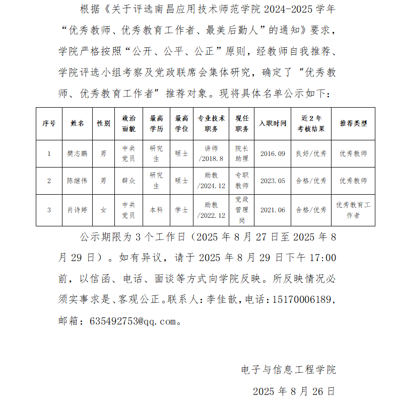 首页栏目 学院新闻 学院公告 学生工作 您现在的位置是:首页 > 首页栏目 > 学院公告 关于 2024-2025 学年“优秀教师、优秀教育工作者、最美后勤人“推荐对象的公示 管理员2025-08-261771 上一篇 关于公开招募威廉希尔体育威廉体育williamhill2025年迎新志愿者的通知 下一篇 电信学院关于评选2025-2026学年第一学期“优秀学生干部”、“优秀工作者”、“文明寝室”、“先进班集体”获奖名单公示