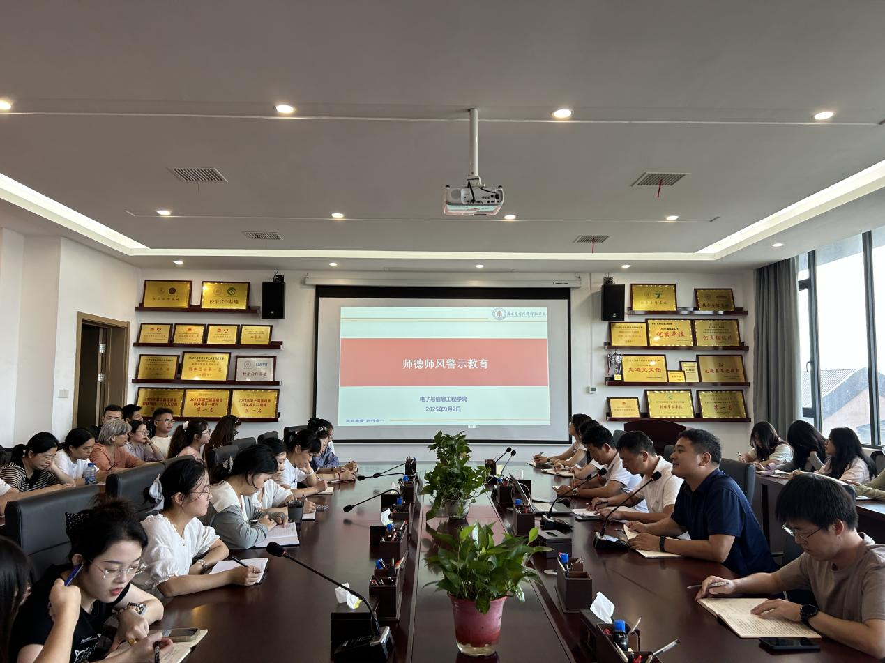 9月2日,威廉希尔官网于沁苑5实506会议室召开新学期师德师风警示教育专题工作会议,会议由党总支书记江建华主持,全体教职工参加会议。