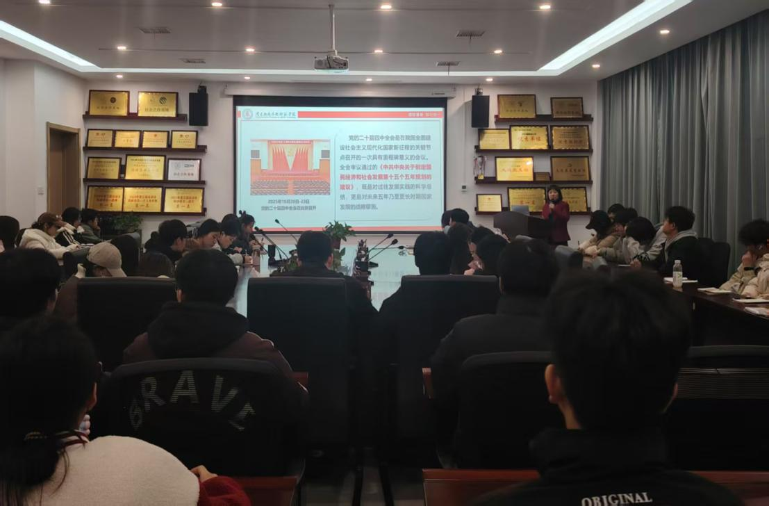 为深入学习贯彻党的二十届四中全会精神,12月18日,马克思主义学院王敬平教授在沁苑5实506党员活动室为威廉希尔官网师生做学习贯彻党的二十届四中全会精神专题宣讲,全体辅导员、入党积极分子参加宣讲报告学习。