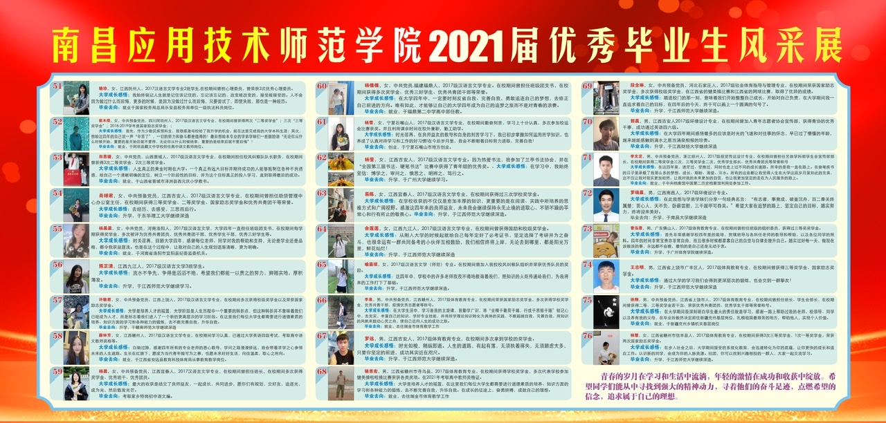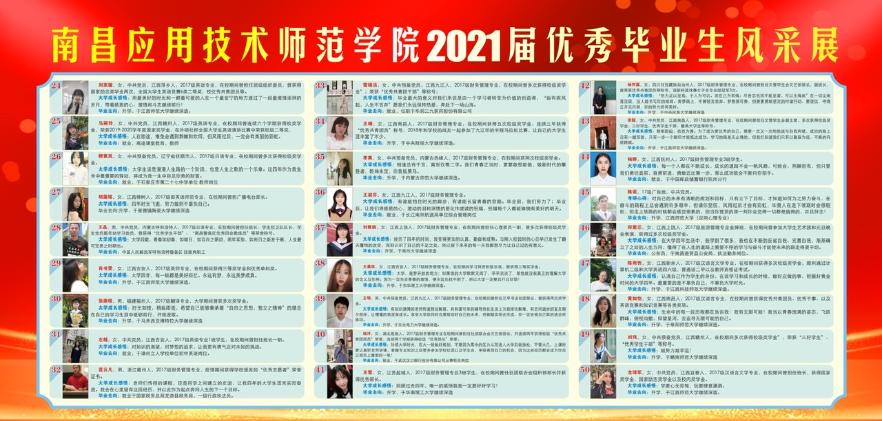 先进典型 优秀毕业生 优秀学生风采 优秀教职工 您现在的位置是:首页 > 先进典型 > 优秀毕业生 学校2021届优秀毕业生 管理员2021-07-213069 下一篇 青春榜样力量||优秀毕业生——华文新