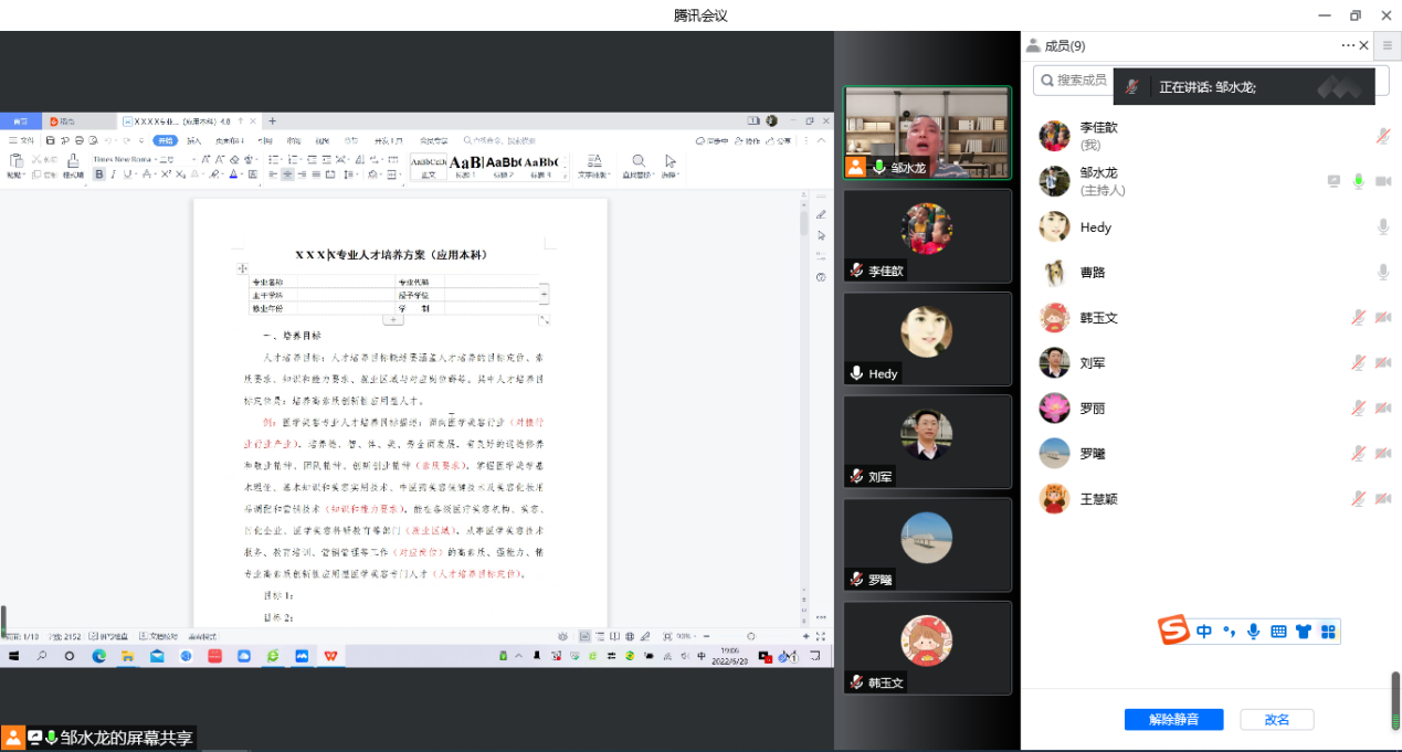 为扎实做好2022版人才培养方案修订工作,6月20日晚,威廉体育williamhill利用腾讯会议,召开2022版人才培养方案修订线上研讨会,学院教学管理人员、各专业负责人参加了此次会议,会议由院长邹水龙主持。